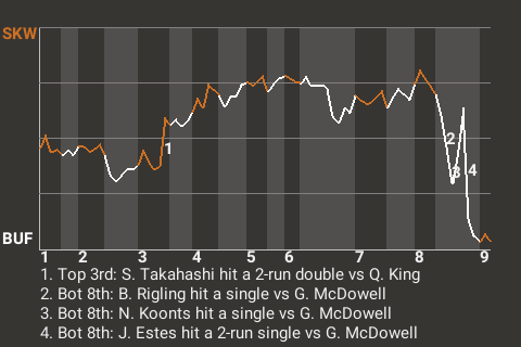 2 (2, 4th Inning off Q. King, 0 on, 0 outs; 8th Inning off A. Moore, 0 on, 0 outs)