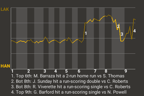 Who knows how it would've ended, had it not been for Greg Barford? The five-time All-Star Barford stroked a run-scoring single in the top of the ninth inning to put Los Angeles up, 3-2. For the game, he was 3 for 4, including 1 double and 2 singles.